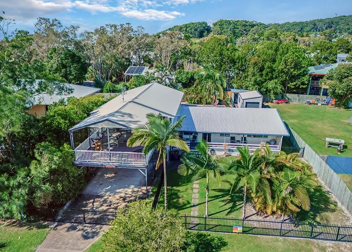 Nestled a 10-minute drive from the Carlo Sand Blow, Dunworkin Rainbow Beach villa entices guests to explore various tourist destinations nearby.